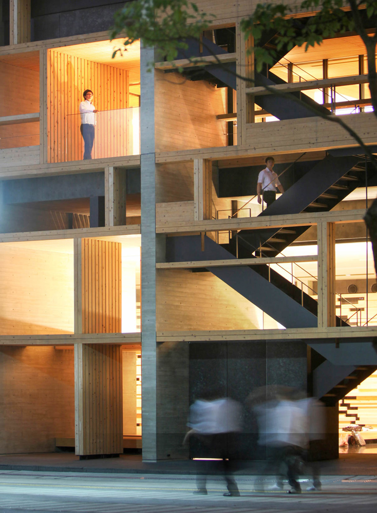これまで担当した大型建築が火災になったことはなく、階段をオープンに造ることの優位性は現時点では実証できていない。だが、多くのクライアントはこの話に頷いてくれ、これまで手掛けたほとんどの仕事で、僕はオープンな建築をつくらせていただいてきた。