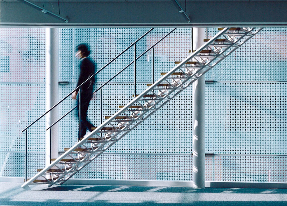 ある日こんなことに気がついて、以来、階段の存在が分かりやすい大型建築をつくることが僕のライフワークになった。本来は壁で囲まれていなければならない階段を、火災時にだけ閉まる扉で包み、普段はオープンにして置く。オープンにしておくと、存在が見えるし、普段の生活でもその階段を使ってもらえるようになり、避難経路を自然に習得してもらうことができる。初めてビルを訪れた人のためには、階段を印象的なデザインにすることで、見た瞬間に存在を忘れないように印象付けてしまうなど、手法はさまざまだ。