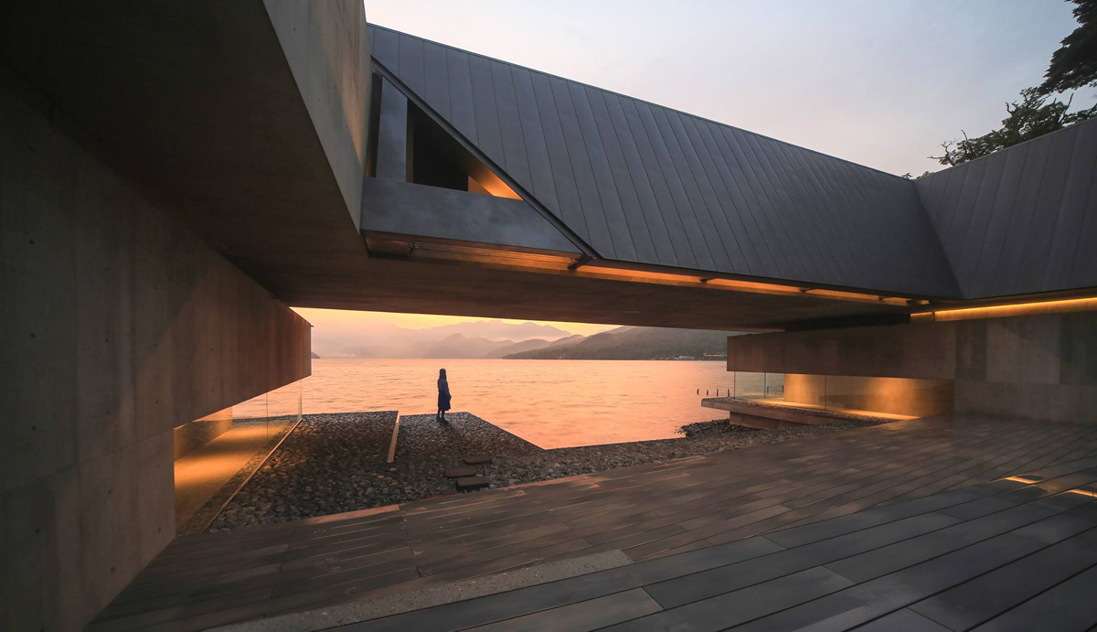 中禅寺湖畔に建つゲストハウス「On the water」では、湖水面からの膨大な放射熱と、湖上に流れる冷えた風を取り入れることで真夏でも冷房なしで環境が生み出す涼感を味わうことを目指したデザインを試みた(図4)。