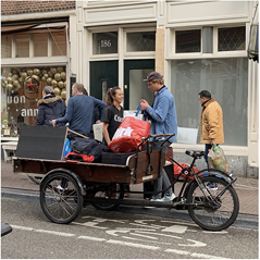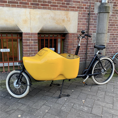 箱型の荷台がついた輸送用の自転車バクフィッツは、こどもと一緒に外出する際や、日用品や食料の買い物、引っ越しといった日々の暮らしの中で頻繁に使われており、子育て世代の生活必需品の1つとなっています(写真1)。今回は、その中でもオランダのか「子供を乗せ用のバクフィッツ(Bakfiets)」についてレポートしたいと思います。