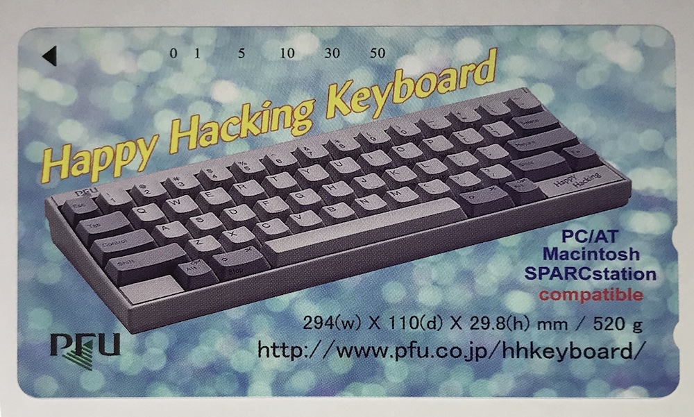 ◀今となっては貴重なHHKBテレカ(しかも未使用品)。これも時代を感じさせるノベルティだ。(クリックで拡大) |
