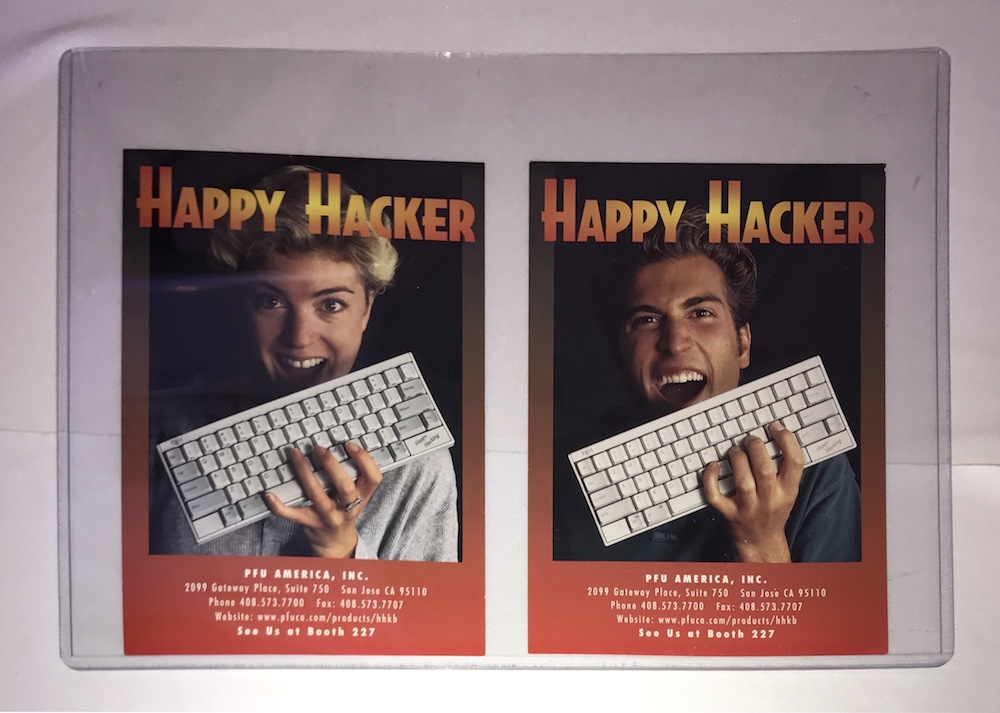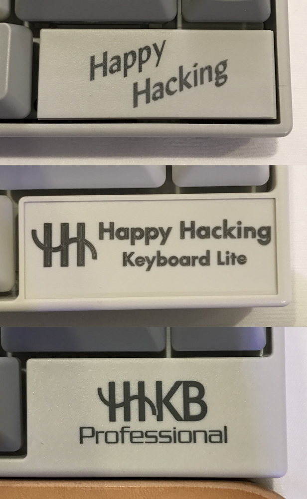 ◀その結果、北米では、キーボード右下隅にある「Happy Hacking」の製品名の部分に、ユーザーのネームプレートを購入特典として貼り付けることにし、それが逆に好評を博した。その後、製品名の部分は、徐々に略称であるHHKBのロゴをメインにするように変化していく。(クリックで拡大) |