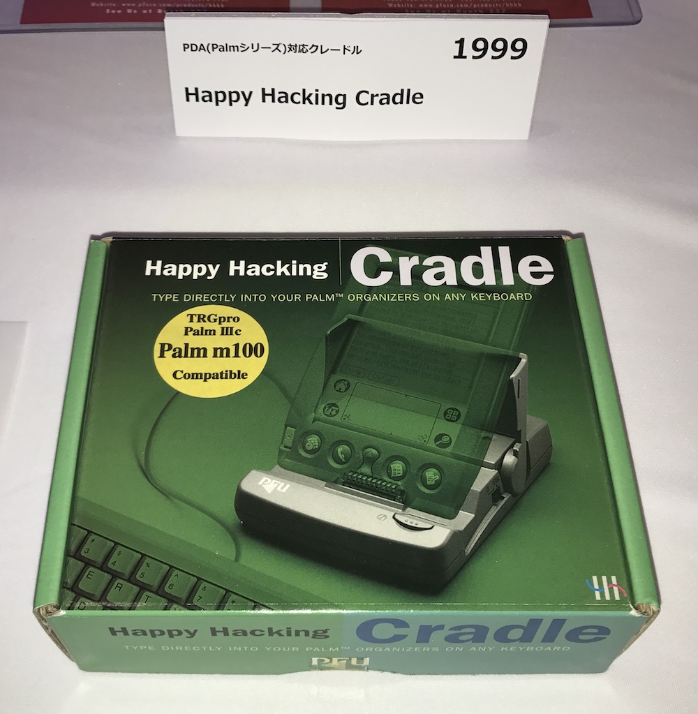 ◀HHKB史上、最大の珍品ともいえる「Happy Hacking Cradle」は、一世を風靡したパームの電子オーガナイザーを外付けキーボードに接続するためのドッキング・クレードル。そんな時代もあったと、懐かしく思える製品だ。(クリックで拡大) |