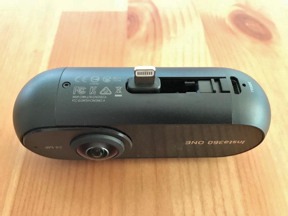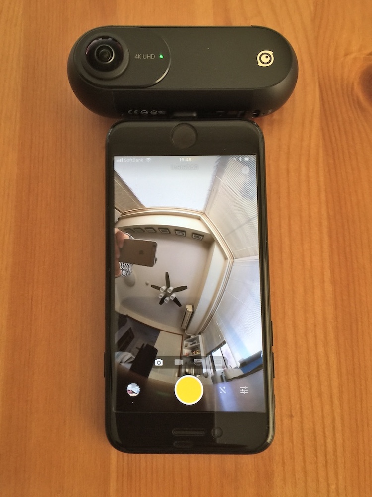 前後のレンズは大胆にも光軸がずれており、そのため、純粋なスティッチング(前後の半球画像を合成して全天球画像を作り出すこと)の精度はThetaのほうが上に感じられる。しかし、4Kビデオ撮影や2400万画素の静止画撮影、6軸手ぶれ補正などの機能性を詰め込んだ上で、iPhoneに装着できるコンパクトさを実現するために、たどり着いた構造なのだろう。