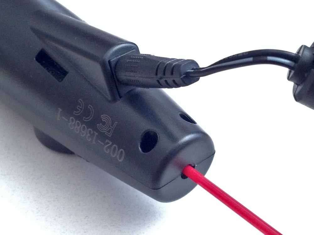 ◀フィラメントは最後端の中央の穴から挿入し、胴体の中を一直線に進んでサーマルヘッドに到達する。充電池などは内蔵せず、専用のACアダプタから供給される電力で動作する。(クリックで拡大)