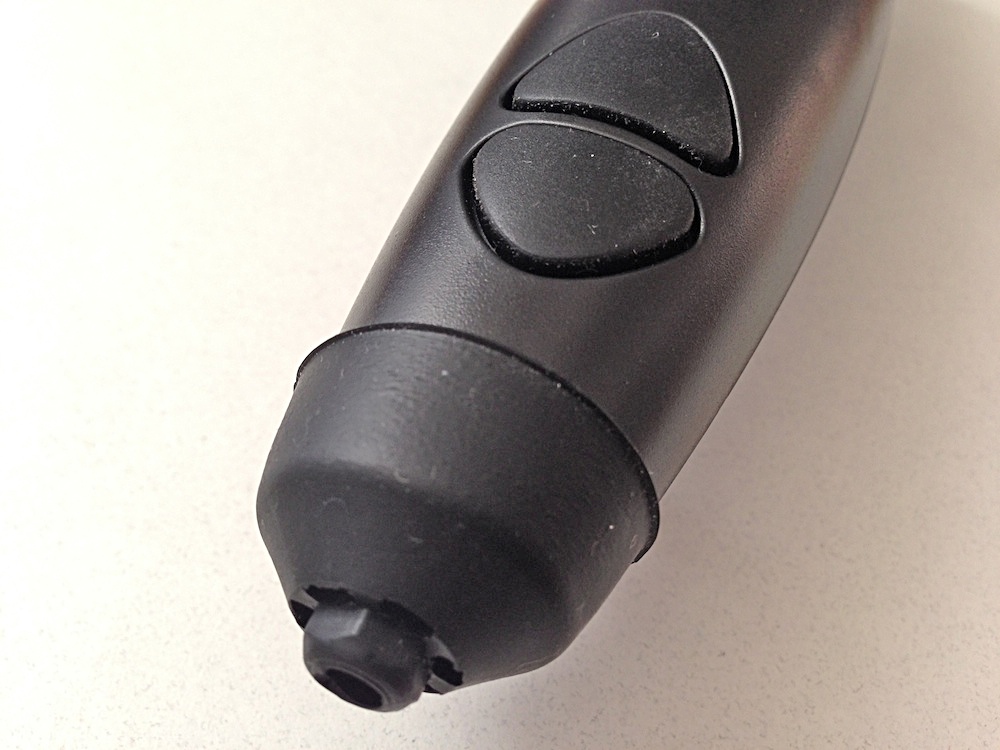 フィラメントの射出スピードは、本体を握ったときに人差し指の位置にある上下2個のボタンで2段階に調節できる。また、フィラメントの色替えなどのために未使用部分を排出する場合には、両方のボタンを同時押しすることでモーターが逆転する。