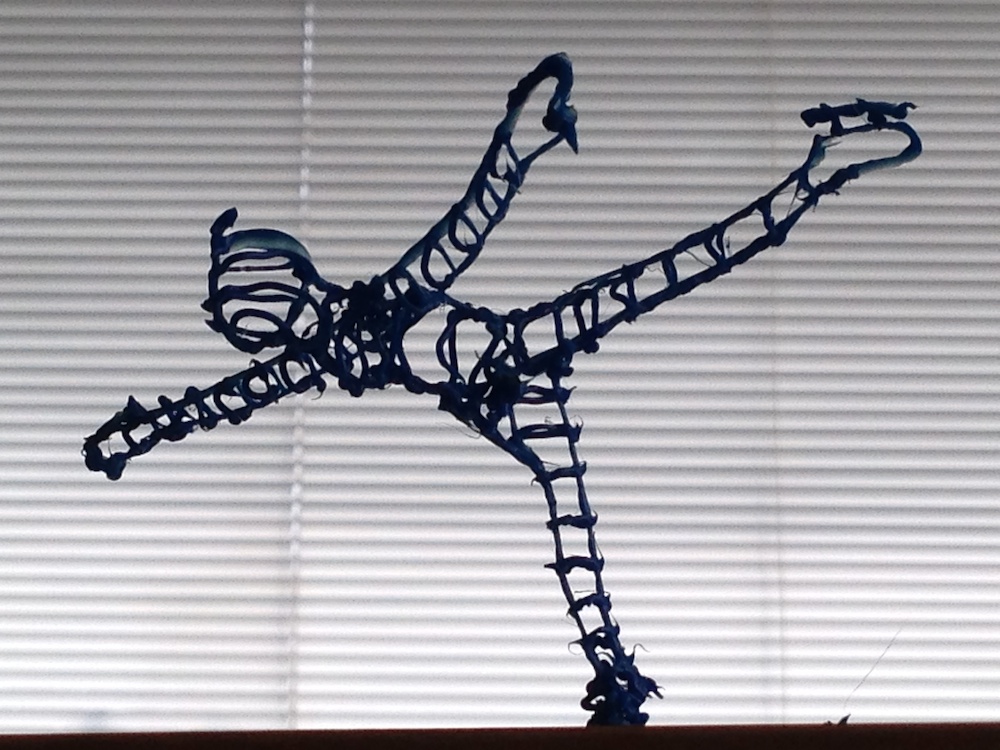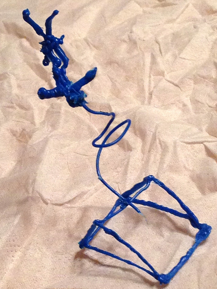 ヘッドの動きからフィラメントの送り出しまで、完全にマニュアル操作であるため、当然ながら精度は期待できないものの、データ不要ですぐに樹脂による造形できる点は、非常に面白い。