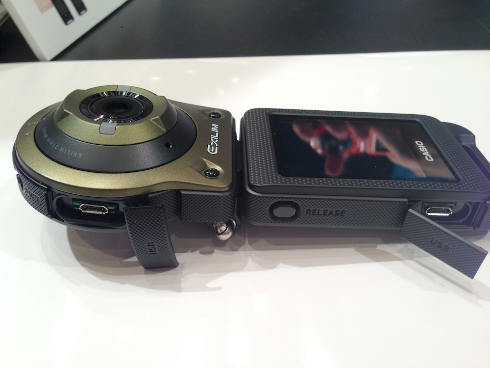 アクションカムとよりセルフィー(自撮り写真)機能を重視した1,400万画素のカメラ。そしてタッチセンサー式の2インチ液晶画面を持つコントローラー部を分離し、ワイヤレスでつないだカシオの新コンセプトデジカメを紹介する。