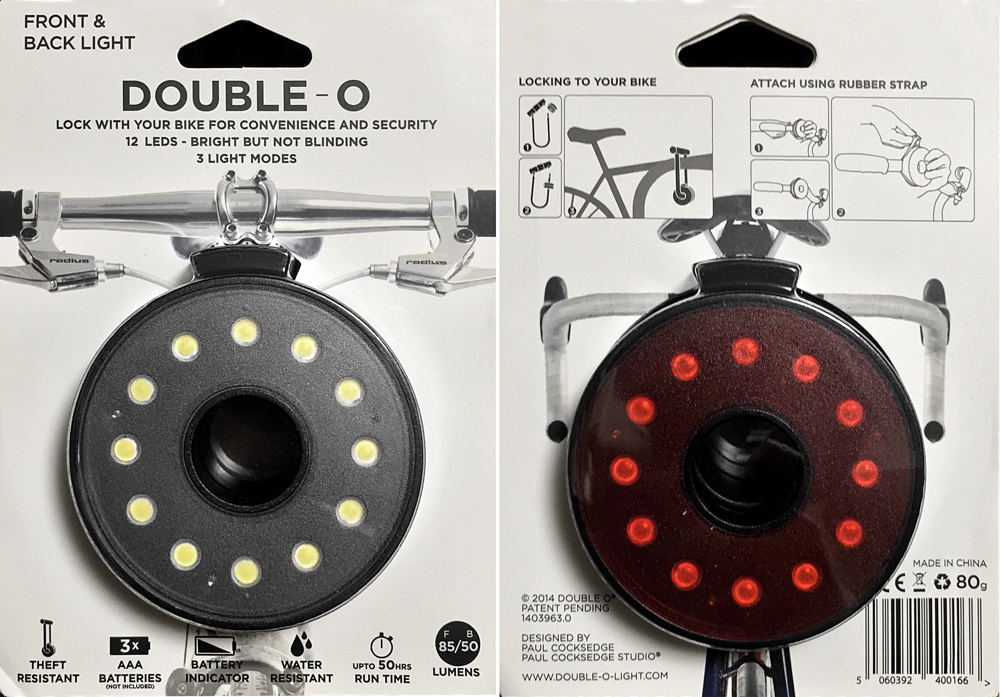 ▲自転車用ライト「Double O」のパッケージ。(クリックで拡大)