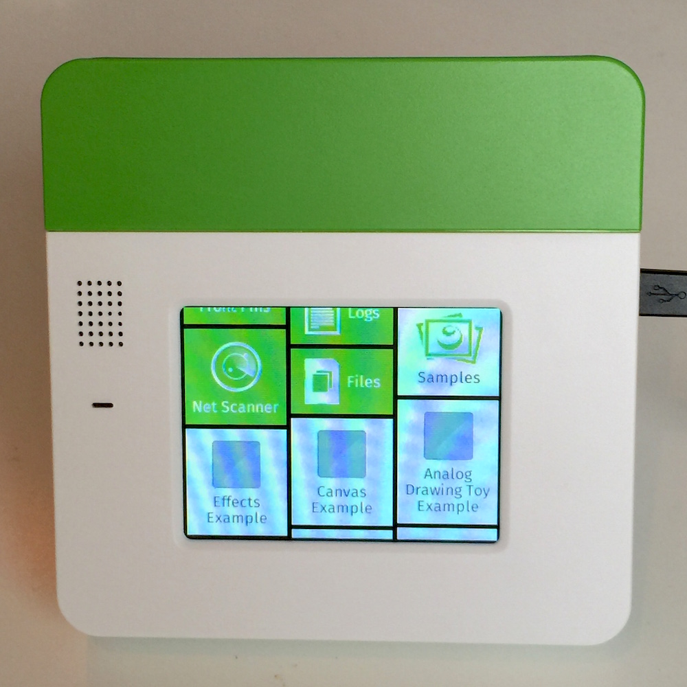 このアイデアのヒントになったのは、数年前から電子工作系のホビイストやメディアアーティストの間で人気を集めている新世代のワンボードマイコン(ArduinoやRaspberry Piなど)である。それらとセンサー類の組み合わせでも似たようなことは可能だが、作品作りではなく、開発環境的に使う場合には、いずれにしてもモニタや標準的な電気的インターフェイスが必要になる。そこで、最初からカラーディスプレイやタッチスクリーン、Wi-Fi/Bluetooth機能を備え、バッテリー駆動可能なモバイルオペレーション対応仕様としたものが、Kinoma Createなのだ。