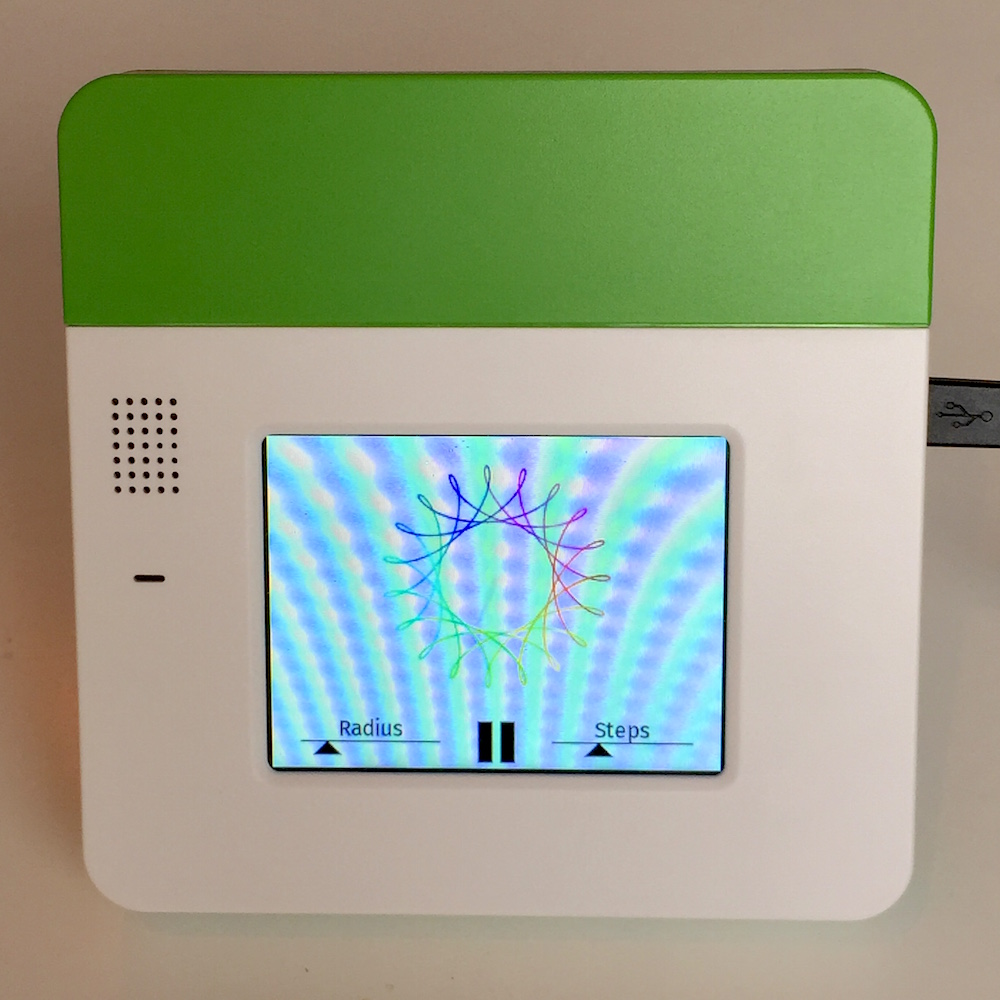 ◀スピログラフのようなパターンを生成できるアプリを動作させたところ。(クリックで拡大) |