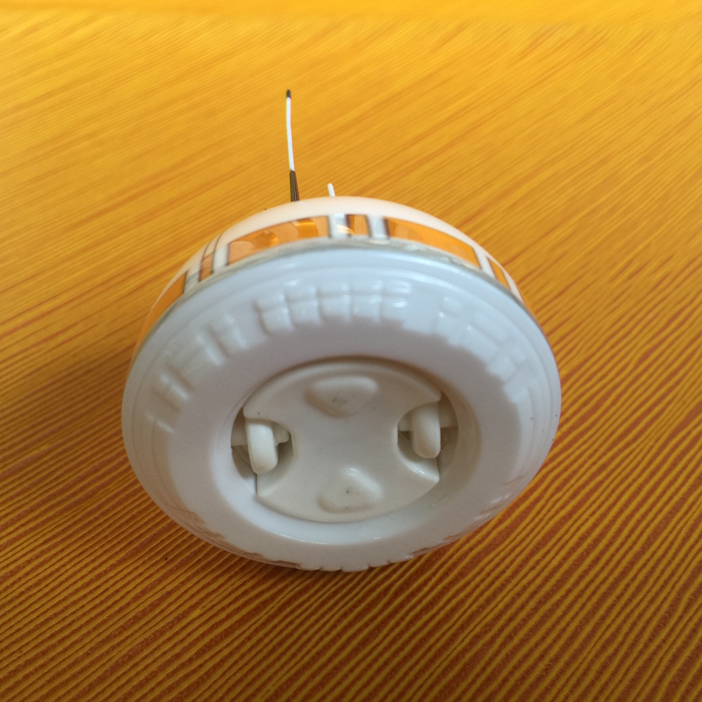 BB-8で不思議に感じられるのは、360度どの方向にも転がることのできる球形ボディの上に載った、頭部を支える仕組みである。加減速時にやや前後に揺れるが、基本的には上部の一定のエリアに留まったまま走行したり、顔(?)の向きだけを変えることもできる。