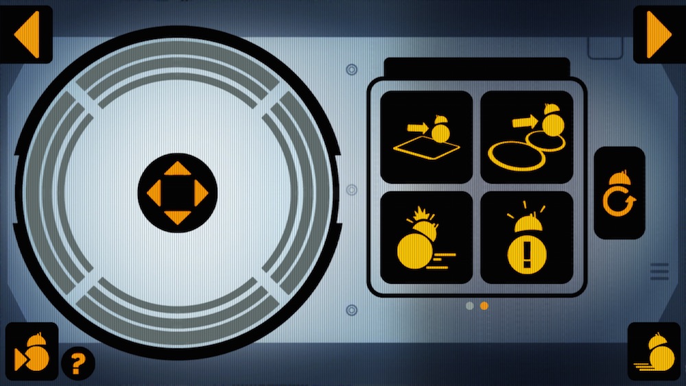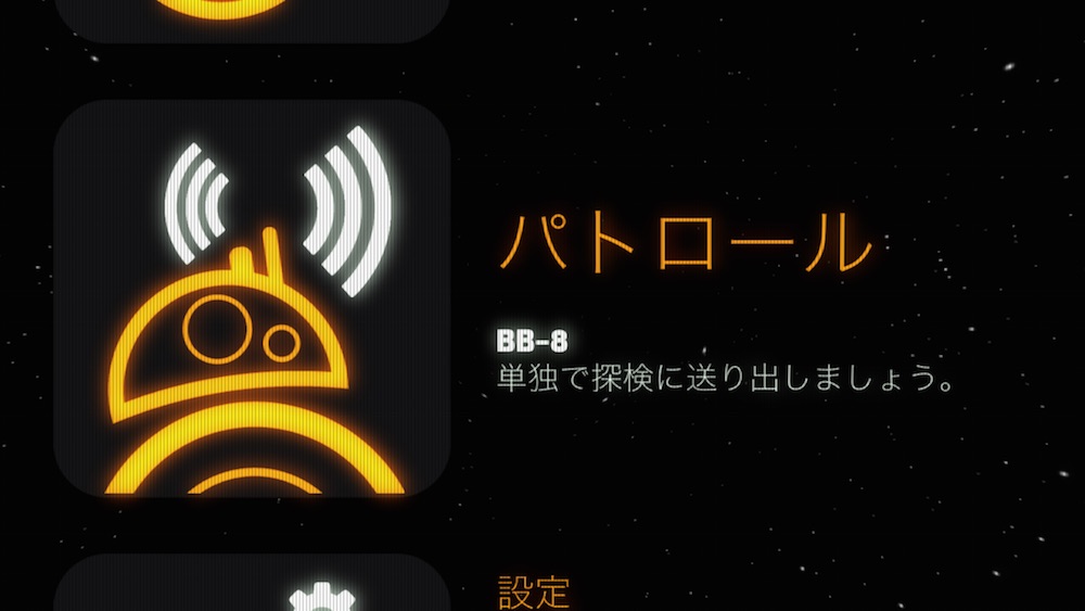 ◀ドライブモードでは、BB-8を画面上のジョイパッドを利用して自在に走行させることができ、頭部の向きを通常とは逆にした後ずさりのような走りや、一時的な速度のブーストも楽しめる。(クリックで拡大) |