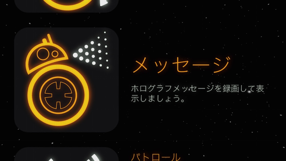 専用アプリもよくできており、ラジコン的に操縦するだけでなく、プリセットされた動きや、スター・ウォーズではおなじみのホログラフィックメッセージの擬似的な再現、自律走行によるドロイド感の演出、そしてボイスコマンドに至るまで、スマートデバイス側の機能や性能を巧みに利用して作り込まれている。