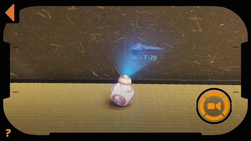 ◀メッセージモードでは、コントロールに使うスマートデバイスのカメラ機能を用いて実写にCGを合成し、BB-8があたかもホログラムメッセージを再生しているかのようなAR(拡張現実)効果が得られる。メッセージはユーザーによる録画も可能だ。(クリックで拡大) |