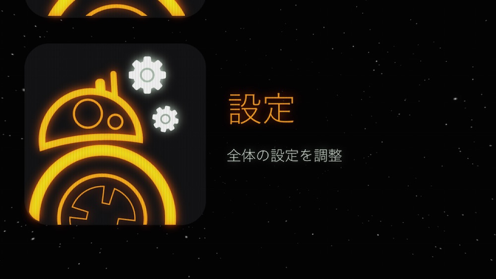◀専用アプリのオープニング画面では、スター・ウォーズのテーマ曲が流れる。(クリックで拡大) |