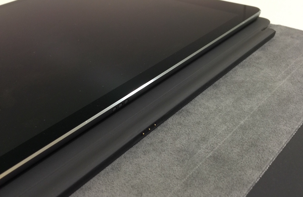本体へのSmart Keyboardの固定は、アップルが得意とする磁力によって行われるが、新たにキーボードへの電力供給と信号のやりとりのためにSmart Connectorと呼ばれる接点が設けられた。