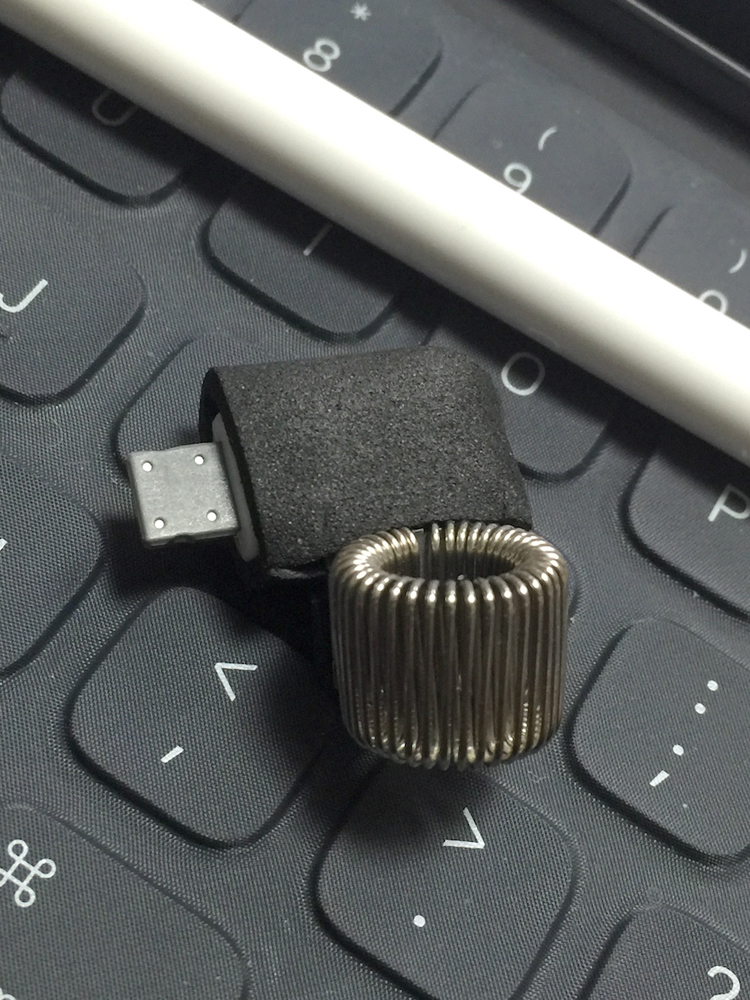 ◀iPad Proの利用時にこれをLightningポートに差すことで、Apple Pencilを使いやすい角度で支えておくことができる。(クリックで拡大) |