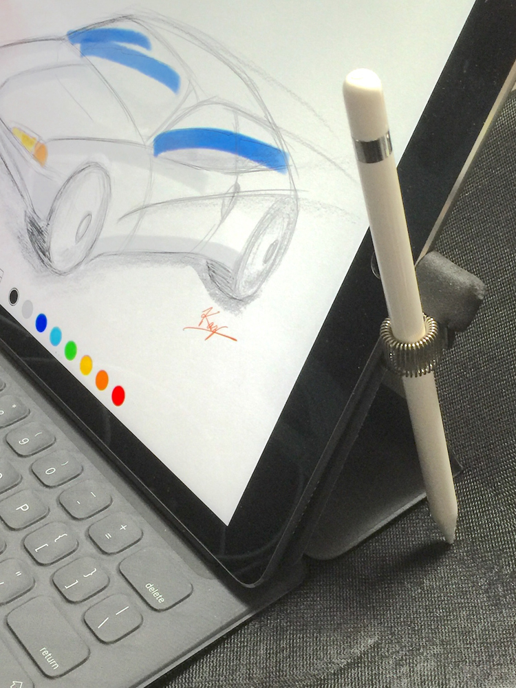 スケッチ作業などでは、解像度もさることながらキャンバスに相当する画面のサイズが重要である。iPad Proは、そこを満たした上で、これまでにない自然な描画を実現するために、スタイラスを超えるアナログ感覚の入力ツールのApple Pencilを作り出した。