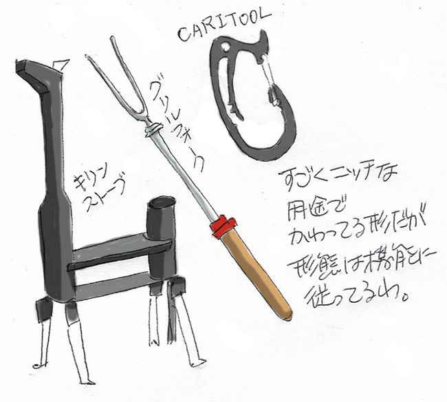 先日友人に強く勧められたのがスヌーピーみたいに焚き火でマシュマロやソーセージを焼くとき便利なグリルフォーク。こんなものにまで優れた銘品があるのか、ただの棒じゃだめなのか。80cmまでアンテナみたいに伸ばせて手元のリングで具材をくるくる回せる、フォーク先端の開き角度にもこだわるべき、と熱弁され、焼いたのを食べると確かに直火網焼きよりふっくらしている。よく考えたらキャンプの話題ってキャンプ用品について語ってること多いな。