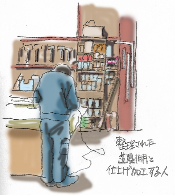 今回のイベントスケジュール。2日目の【Zコース:特注メーカーの工場と職人】に参加。全国の図書館、ホテル、病院や、個人宅の特注家具(主に棚やシステムキッチンのような箱もの)を手がける4社訪問。先日オープンのホテルの客室家具とか、とある企業に収める傘立て50個とか。突き板作ってカットして小口を化粧仕上げ、塗装して梱包まで同じフロアでやっちゃうとか。とはいえ手加工自体は丁寧で小さい工場とあまり変わりがなさそう。