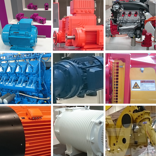 産業機器、重電は「デザインで買うもんでないから=地味デザイン」が良しと思いがちだ。これらのカラフル重電も実際は納品先の要望で色は変えることも多いだろう、一方どこかの機械室の奥でオレンジやブルーのごつい機械がエレベーター動かしたり発電しているのかもしれない。
