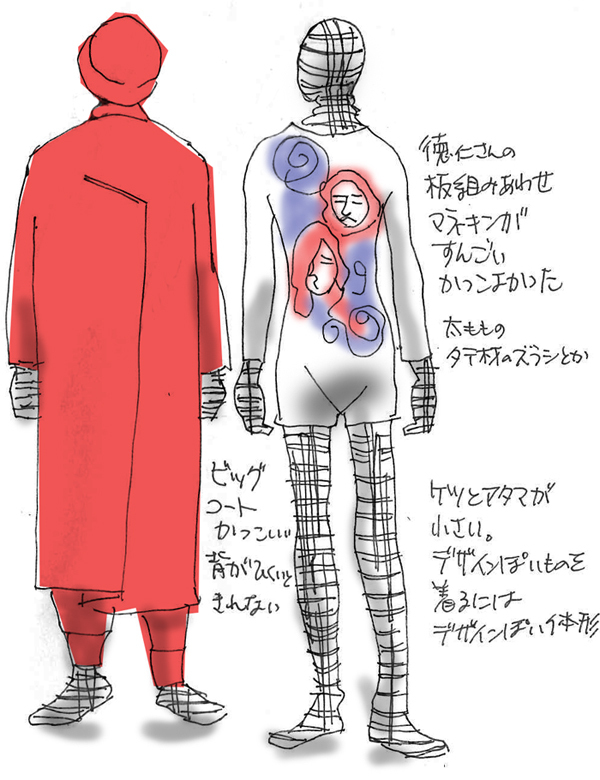 でも金箔が押された折り紙畳みの服や肩からストンと落ちた背中の美しいコートがもう欲しくなって非常に困るほどの【デザインぽい】の極みだなあ。