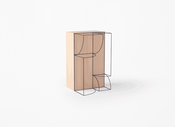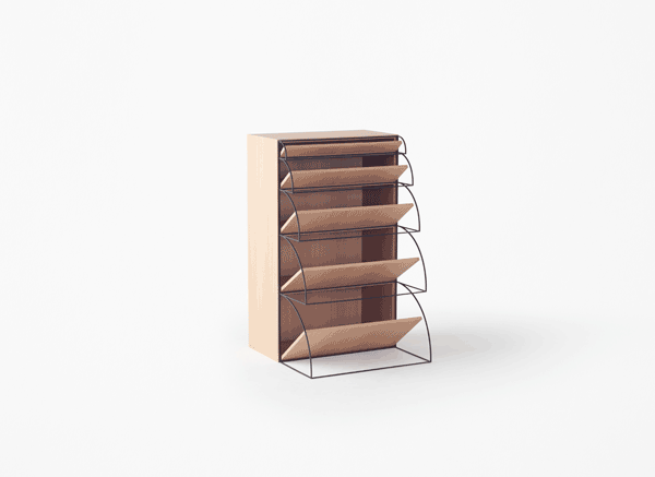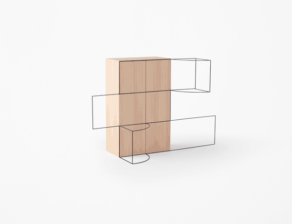 収納家具のドアの無意識のうちに認識している動きにデザインの魅力をフォーカスした作品「トレース」だ。しかもフレームがあることで開閉に必要なスペースを確保できるという機能的な側面もある。