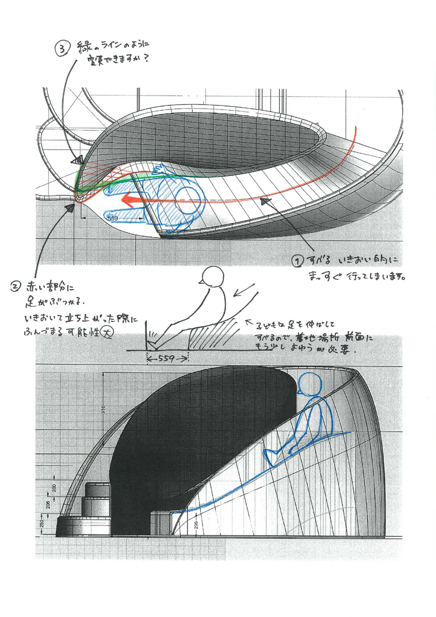 ▲「らせん滑り台」のスケッチ。(クリックで拡大)