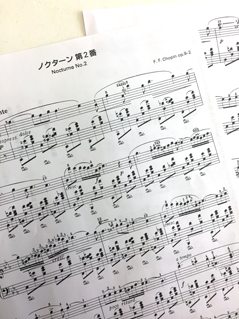 ▲ショパン「ノクターン」の譜面。音符の解釈、各自の弾き方でここに記されている音楽は大きく変わる。(クリックで拡大)