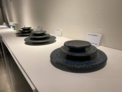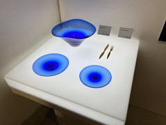 ▲澄川伸一新作デザイン展より「副島硝子の透明ブルーの皿シリーズ」。(クリックで拡大)
