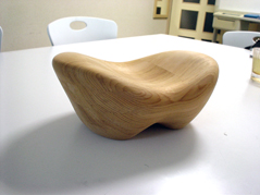 ▲「ヒノキのお昼寝枕」。仕事中に睡魔に襲われた際、眠気と戦っているよりは10分でも寝ればすっきりして復活するものである。しかしながら、仕事場に枕があるというのはなんか、非常にだらしなく感じられて嫌なものでもある。ヒノキのブロックのNC削り出しのこの枕は、木材でありながらも快適に首筋や頭部にフィットする。ヒノキの香りで癒されながらの10分間は至福の時間でもある。オブジェ的なたたずまいで、オフィスに置いてもインテリアとして映える。限定生産品で現在は入手不可ですが、過去にこんなものも作っています。(クリックで拡大)