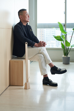 「玄関椅子」「靴ベラ」(ミマツ工芸) 「玄関椅子」は、玄関先でちょっと座りたい時があるけども、椅子を置くほどのスペースがない場合に大活躍。白木の質感が、爽快な雰囲気になります。座面は畳で、さらっとした感触です。内部は収納スペースで、折りたたみ傘、スリッパなどが収納できます。同じ雰囲気の「靴ベラ」も、倒れない工夫がされているスタンド付きのデザインで場所を選びません。(クリックで拡大)