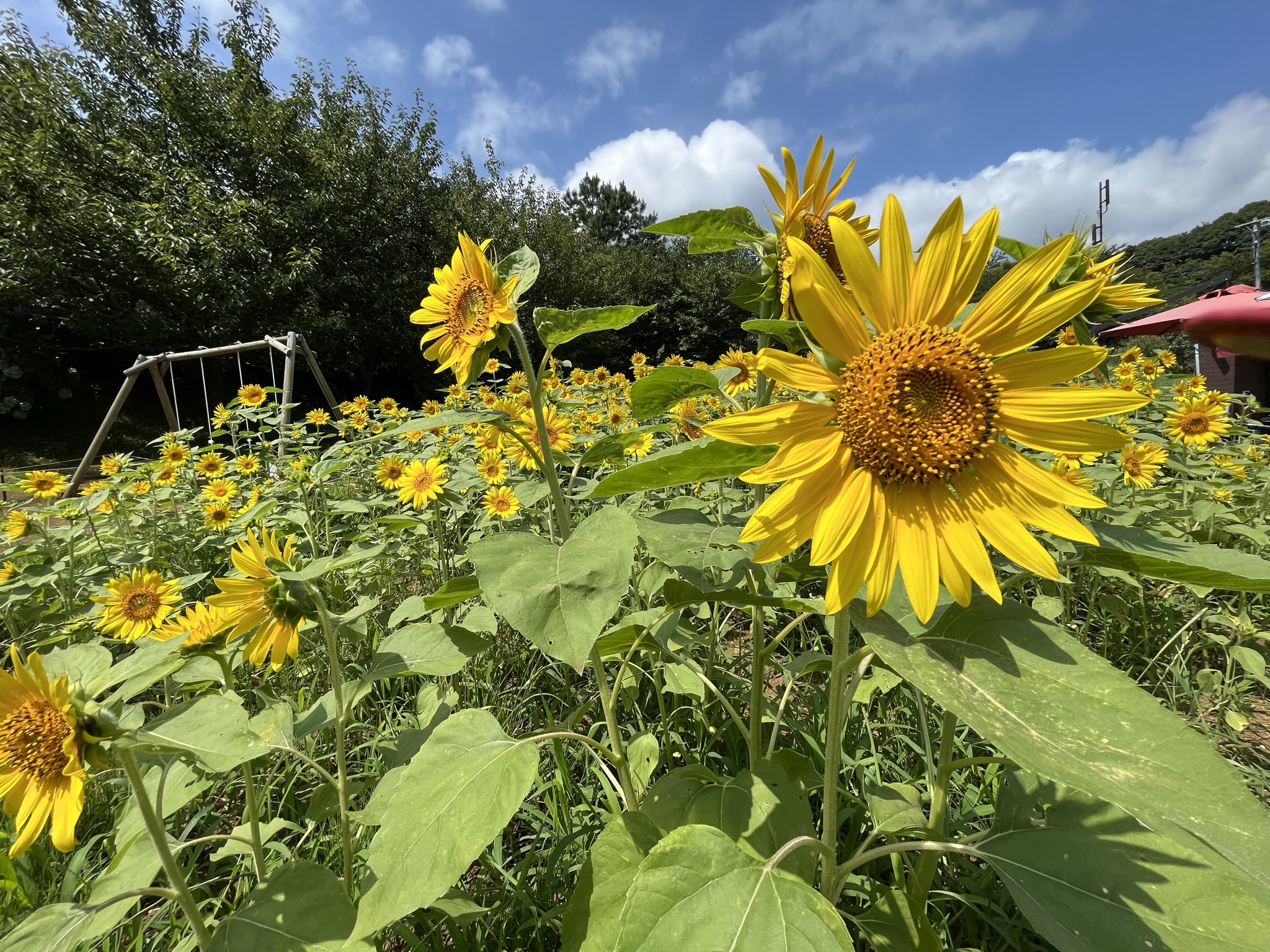 ▲散策中に突然現れたひまわり畑。真夏に見るこの黄色はやはり鮮やかで気持ち良い。(クリックで拡大)