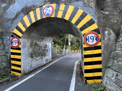 ▲近所の小さなトンネルの周囲の注意喚起。黄色と黒のハチ模様が使われている。(クリックで拡大)
