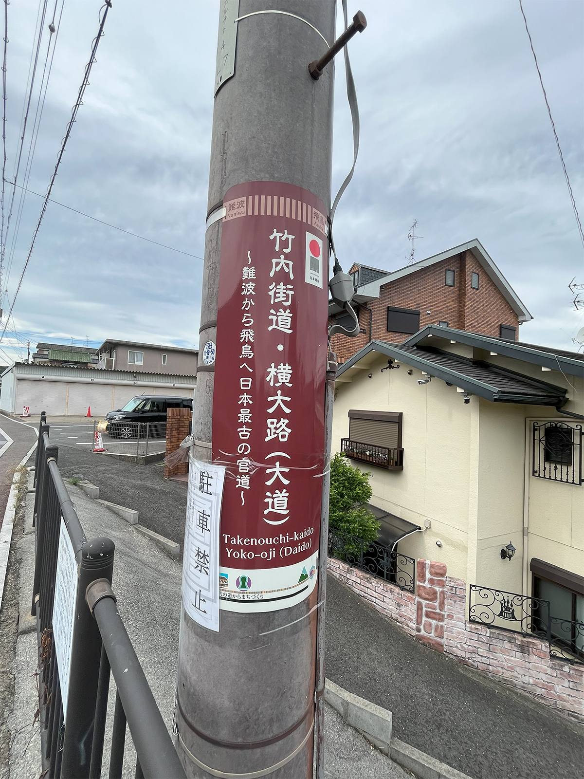 ▲スタートの近鉄線古市駅を2分ほど歩くと、日本遺産である竹内街道に出る。日本最古の官道といわれていて、大阪と奈良を結んでいる。飛鳥時代の交通の大動脈だったらしい。この道に沿って、古墳が至る所に存在するので、この道とも関係が深そうである。すごく細い路地であるが、独特の雰囲気がある。(クリックで拡大)