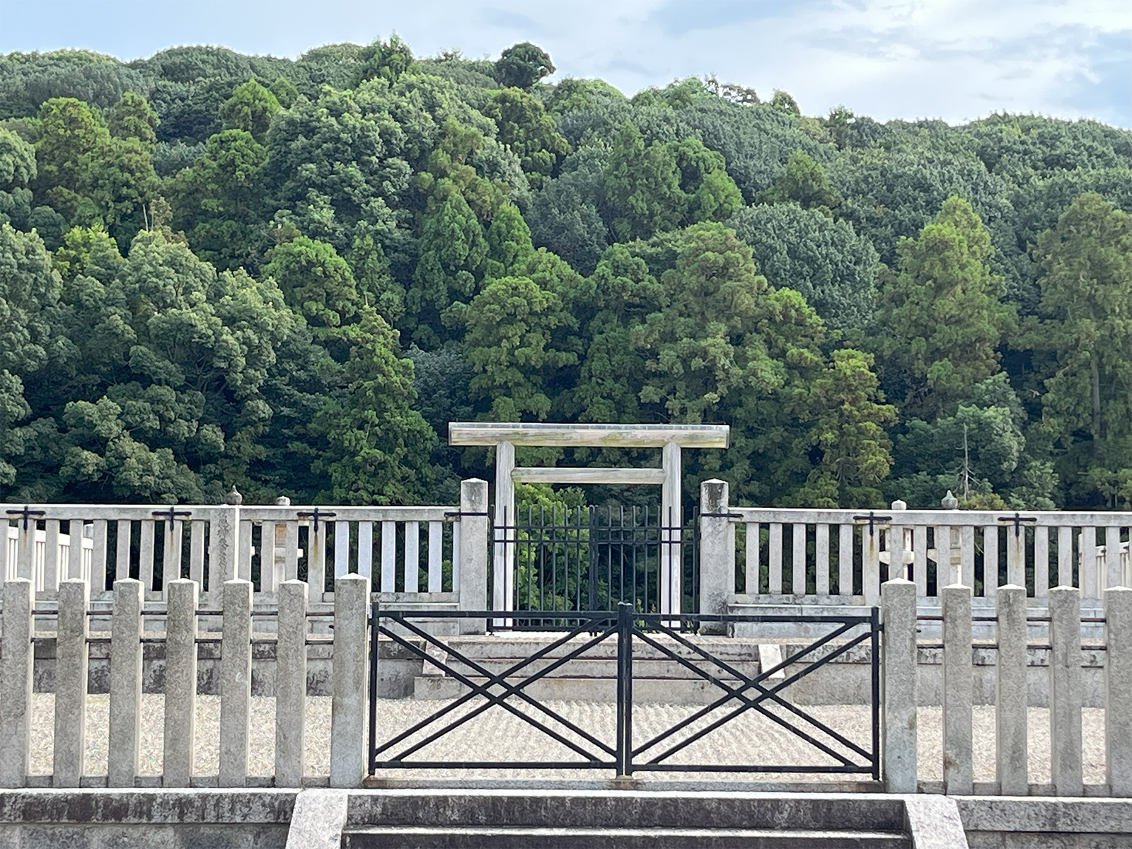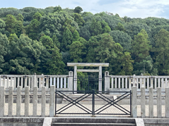 ▲大体、古墳はこんな感じで鳥居があってそこから先には立ち入ることができない。宮内庁管轄化で厳重に管理されている。(クリックで拡大)