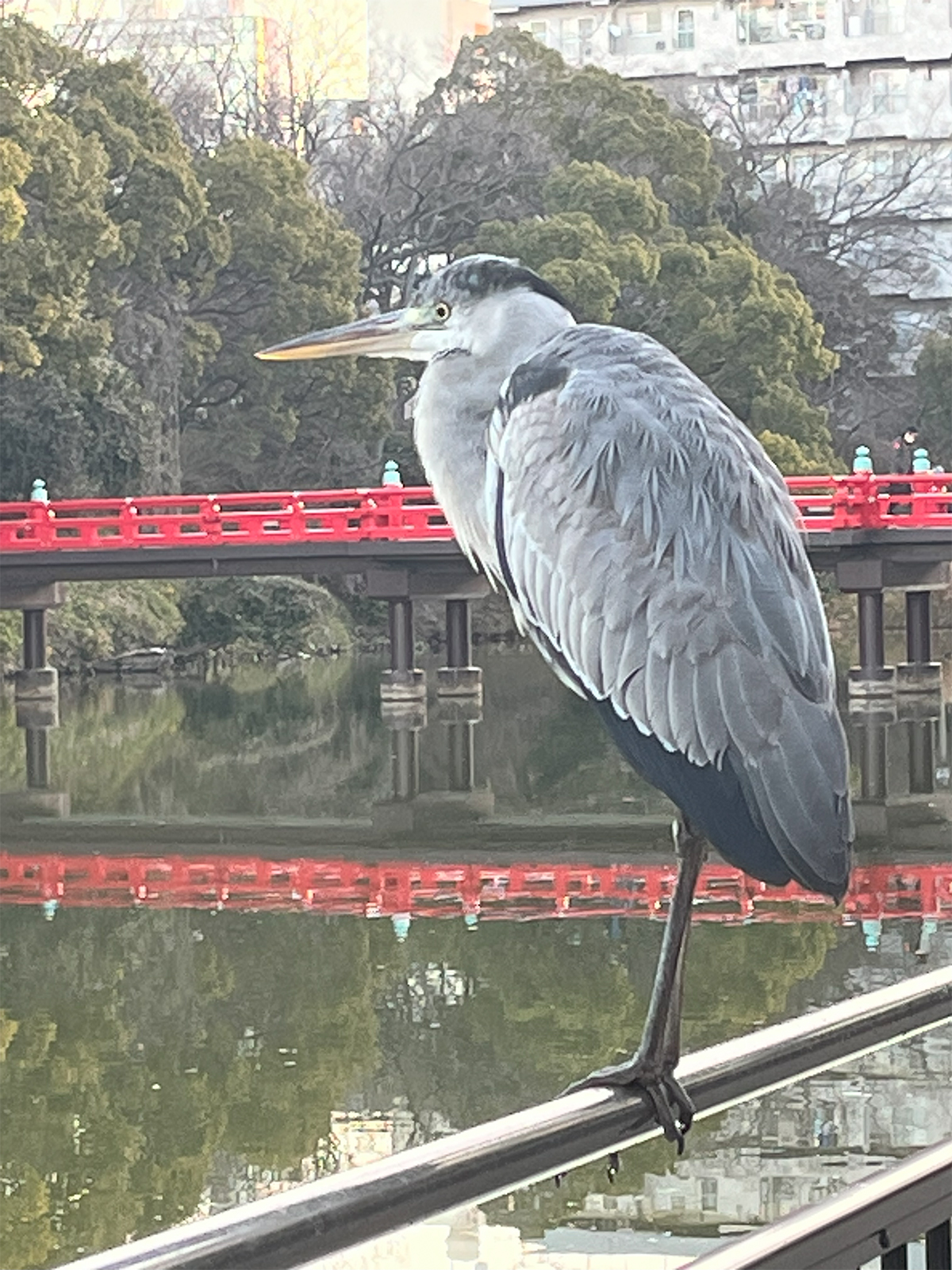 ▲天王寺「茶臼山」の主、逃げないアオサギ。(クリックで拡大)