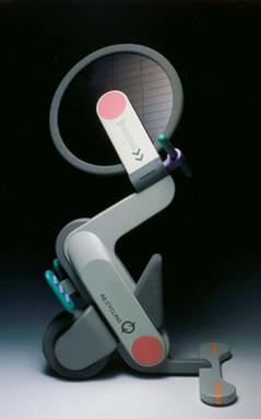 ▲「RE-CYCLING」1992年名古屋デザインコンペ二席受賞。前輪がソーラーパネルとなり、駐輪時に充電できる持続可能な移動システム。International Design Year Book 1993収録作品。ドイツ ブレーメン DESIGNTIME展出品。(クリックで拡大)