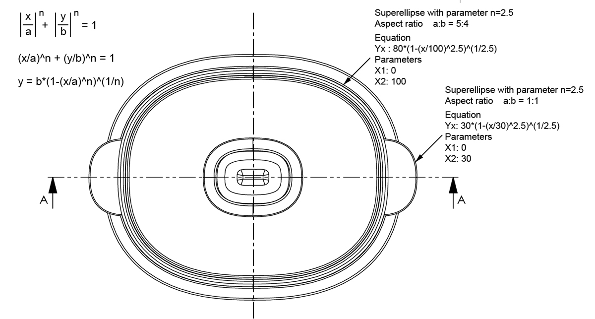 一昨年、筆者はスーパー楕円を用いたキャセロール土鍋を開発した。スーパー楕円の皿などはすでに世の中に出ているが、ピート・ハインのオマージュとして耐火土を用いた土鍋としてデザインを行った。厚生労働省によると2000年以降は1人世帯、2人世帯の全体に占める割合が5割を超え、家族で囲むテーブルはもはや少人数となってきており、1人、2人用の土鍋が必要とされていた。手ごろな大きさで火にかけてもテーブルに出しても収まりの良い形状ということで、スーパー楕円の形状を採用した。