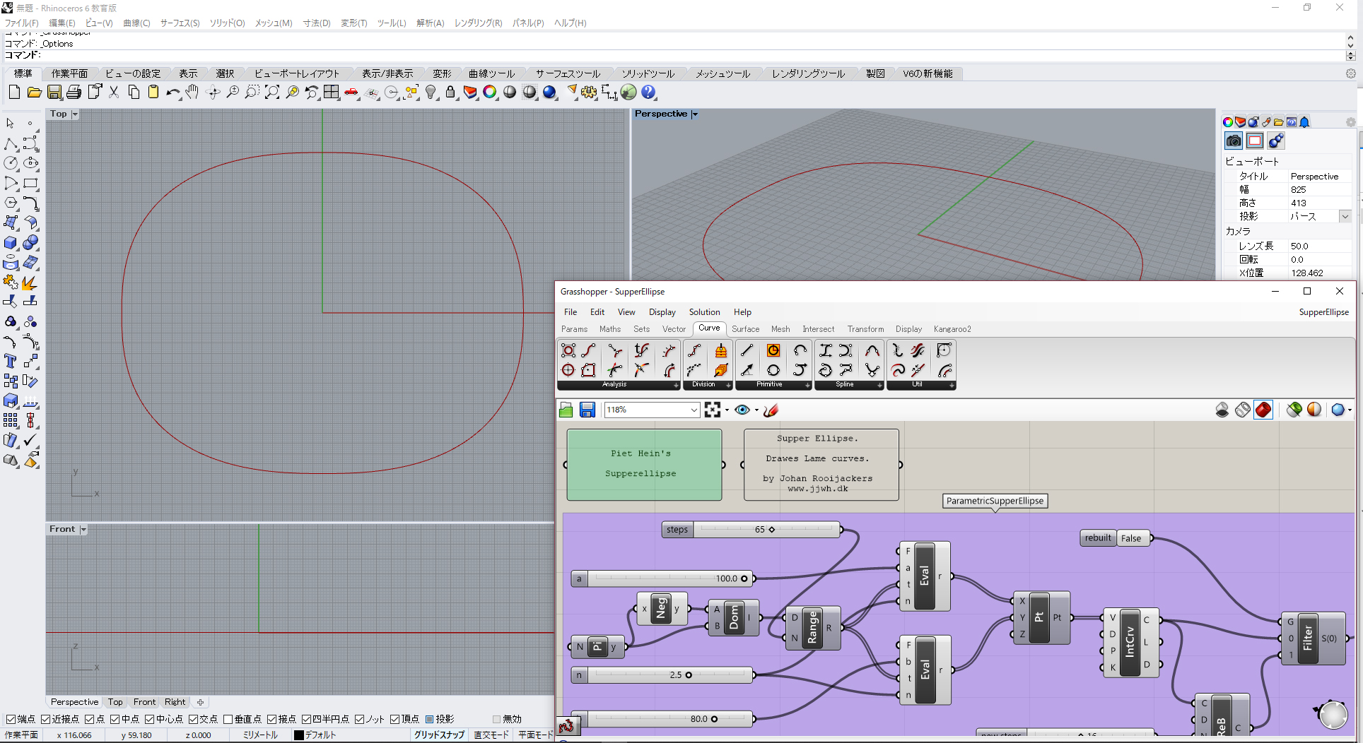 ▲Grasshopper によるスーパー楕円のカーブライン作成 Programming:Johan