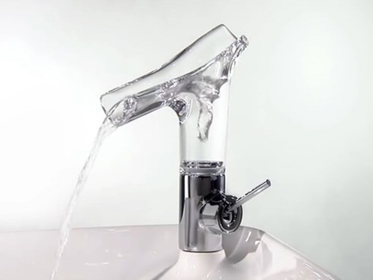 シングルレバー水栓という非常にシンプルな器具の構成を新たに創出したという点では、スタルクの気鋭の才能を感じさせる。さらにスタルクは2015年にAXOR STARCK Vという、より奇抜な発想の水栓を発表した。透明なアクリルの器に水があふれてくるもので、その様子は人と水の接し方の「原型」を表現したもの。業界のデザイナーなら一度は想像するアイデアを見事に実現化していて、フランクフルトのショーで見た時は、とても興奮した記憶がある。価格は20万円以上のハイエンド商品である。。