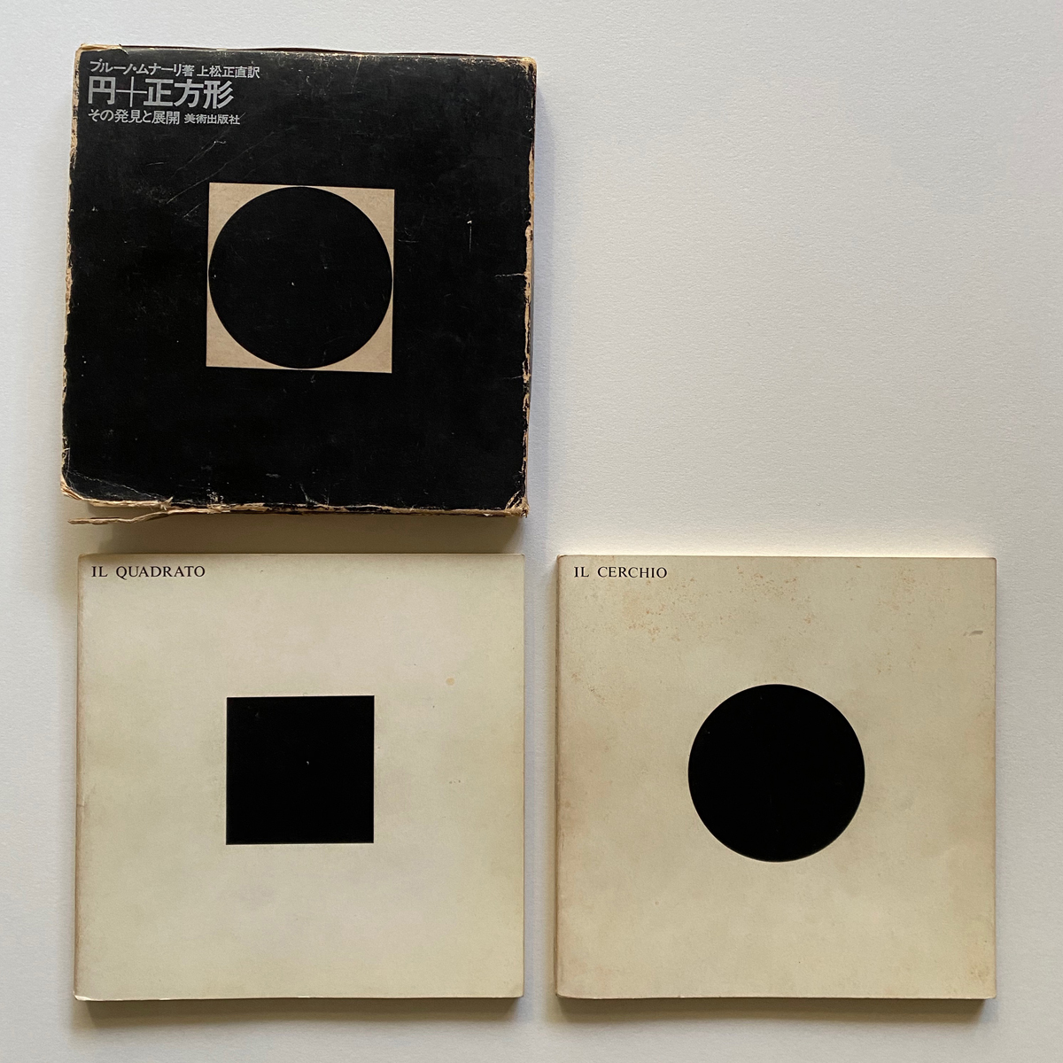 私の父は15年前に他界した。いくつかの形見の中に、ブルーノ・ムナーリの『円+正方形』がある。これは美術出版社で1971年に発行された2冊組の日本語翻訳版で円や正方形にまつわる発見や展開をそれぞれにまとめたものである。私はこれをとても大事にしている(写真1)。
