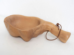 後で調べたら白樺のこぶからできているようだ。白樺のこぶの形と、水を汲んで口に持っていくという行為の間から生まれたかたちで、それぞれの形はこぶの大きさや使う人の手の大きさによって異なる。