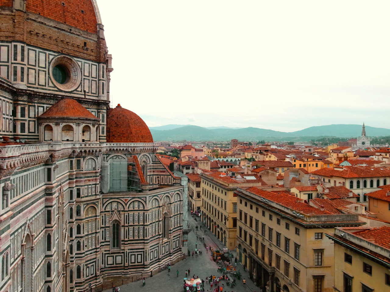 建物との出会いは、その前後の時間、建物の建ち方、周辺との関係に影響を受ける。フィルミニのユニテは、小高い丘の上にある神殿のような立ち姿。サンタ・マリア・デル・フィオーレ大聖堂は、廊下のような外部空間を抜けた先にある、地上からは全体像が見えないほどにそびえ立つ、岩山のような現れ方をする。