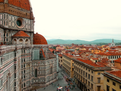やがて道の向こうに、何か今まで見たこともないような得体のしれない塊が見えてきた。ひょっとしてあれが「サンタ・マリア・デル・フィオーレ大聖堂」なのかしらと期待感を持ちつつ向かっていったのだが、それが眼前に姿を現したとき、あまりの大きさにとても興奮した。駅からまるで内部化されたかのような外部空間が連続していたのだが、そのシークエンスのあとに、突如現れるスケールの圧倒的な違い、眼前に現れたときの、まるで「ドーン」という効果音が聞こえてくるかのような存在感に心を打たれてしまった。