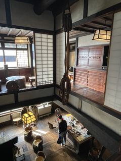 ▲河井寛次郎記念館より。2階の吹抜けから見下ろす。棟梁に設けられている滑車。(クリックで拡大)