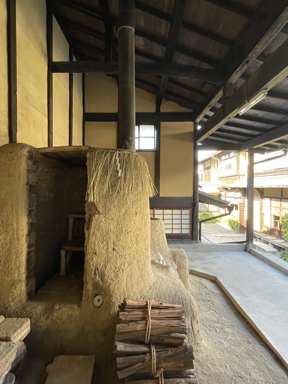 ▲河井寛次郎記念館より。中庭の一角にある素焼窯。中庭が暮らしの場と仕事の場を緩やかにゾーニングしている。(クリックで拡大)