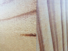 ただよく考えてみると現在のグラフィックシート印刷はかなり解像度が高いことを思い出した。それこそ百貨店で使用される石や木材の多くも実はグラフィックシートだったりする。そこで、合板をデジタルカメラで撮影して合板の画像データを用意し、その上に手描き図面を合成すれば、合板に直接手描きしたように見えるのではないかと思い、試してみた。いわゆる合板のサイズの画像データとなると、いくら今のデジタルカメラが高解像度になっているとはいえ、1枚の写真ではとても足りない。