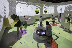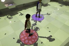 ▲展示空間に入ると自分の情報が形となった分身「ミー」が足元にあらわれ、ナビゲートしてくれる。(クリックで拡大)